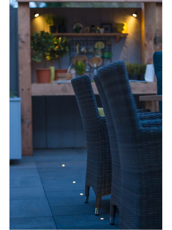 Armatuur FUSION 22 RVS is klein maar fijn. Dit subtiele armatuur met een diameter van 22 mm is afgewerkt met een RVS ring. Het geeft 's avonds een zacht licht dat niet verblindt. Daarmee is het armatuur geschikt voor in bijvoorbeeld traptredes en terrassen. FUSION 22 RVS is goed te combineren met de andere armaturen uit de FUSION lijn.