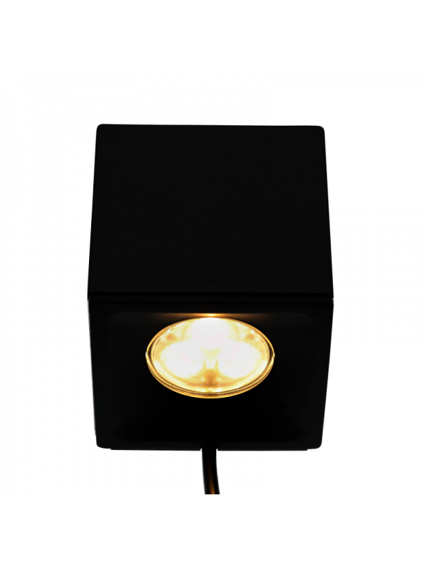 Kubusvormig wandarmatuur in donkergrijs gecoat aluminium. Geeft een warm wit gebundeld licht. BIG CUBID is geschikt voor het verlichten van bijvoorbeeld een schuttingen, muren en pergola's.