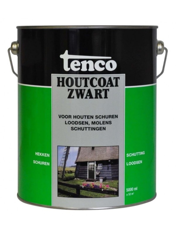 Tenco Houtcoat Zwart is een speciale zwarte coating voor houten objecten welke voorheen zijn behandeld met teerproducten. Tenco Houtcoat Zwart wordt gebruikt ter bescherming en verfraaiing van objecten zoals schuren, schuttingen, loodsen, molens enz. Waarbij het karakteristieke uiterlijk behouden blijft. Tenco Houtcoat Zwart biedt een prima bescherming en is bestand tegen alle weersinvloeden.