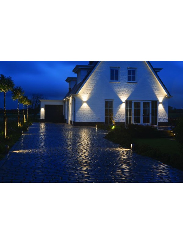 Wandarmatuur ACE UP-DOWN 230v geeft een gerichte bundel licht naar boven en beneden. Het armatuur is geschikt voor aan een schutting of muur. De twee lichtbronnen liggen diep in het armatuur waardoor het licht niet verblindt. Liever een smallere lichtbundel of juist een wat zachter lichtbeeld? Met de los verkrijgbare ACE accessoires kun je de lichtbundels van de ACE armaturen afstemmen op je smaak en situatie.