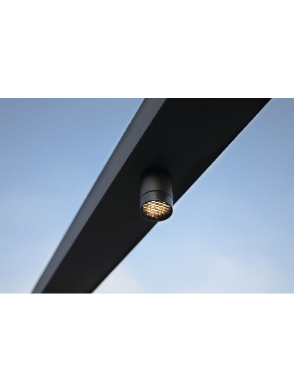 Deze kleine maar krachtige plafond spot is speciaal ontworpen voor buiten. Je gebruikt m in bijvoorbeeld je overkapping of pergola. De speciale killflash met honingraat structuur zorgt ervoor dat het gebundelde licht minder reflecteert waardoor deze spot prettig is om naar te kijken.