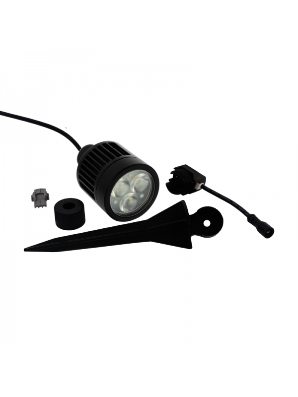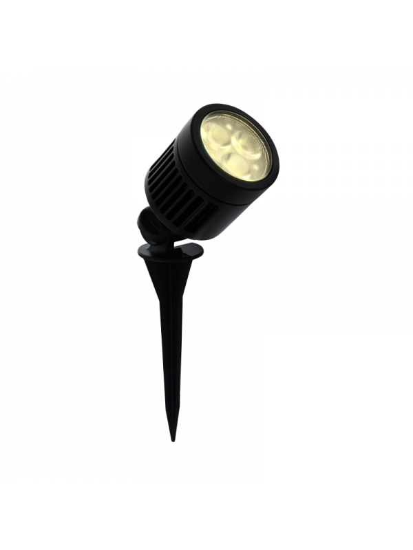 Met het gebundelde licht van LED tuinspot SCOPE licht je speciale plekken in de tuin uit zoals bomen, struiken, beelden en gevels tot ongeveer 5 meter. Dit is de uitvoering met de zwarte ring.