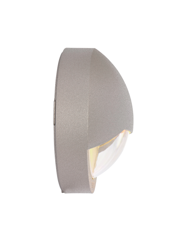 Wandarmatuur in warm zilver gecoat aluminium. BLINK wordt geleverd met twee lenzen: transparant en m..